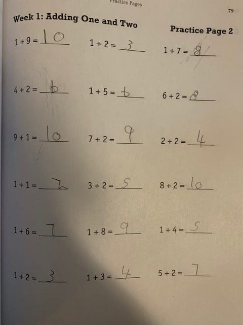 I did this with at the same time with both a second grader and a kindergartener who had zero formal math training. They BOTH get the process and can finish a 24 problem worksheet in under 5 minutes with 100% accuracy with zero interference from me. I am blown away. The only thing I did differently was practicing “visualizations” daily. I’d set up a problem on the 10 frames, flash it to them for a few seconds, and they would write the problem and the answer on their worksheet. We did this for 10 problems daily, and by week 5 my math-hating child said, “Why do you mostly just give us easy problems now?” Because they’re mostly all easy now! It is fast, simple, FUN, requires very few resources, and it WORKS.