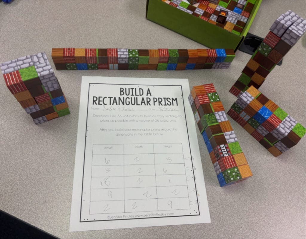 When I went on Amazon to look for magnetic cubes, what I found on sale was these ones made to look like Minecraft bricks. They are not actual Minecraft brand; they are generic (or what my students called “AI Minecraft”) But the students immediately characterized them as Minecraft, and they were OBSESSED. You can find them here. I originally bought a box of 300 but then ended up buying a second box. Many of my students’ parents have since purchased them from home as well! One 4th grader excitedly told me he got them in his Easter basket (a sign of a really fun math manipulative.)