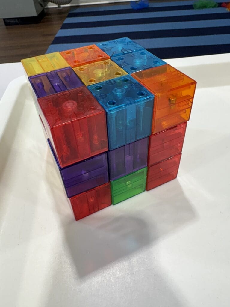 I became a teacher in the nineties. I have been using plastic unifix cubes for a lot of things for years. And they are great. But then one day over spring break this year I was at Play Street Museum with my six year old grandson, and they had magnetic cubes. I found myself as a middle aged adult fascinated by playing with these. And knowing that my 5th grade homeschool hybrid academy group was about to start learning how to find volume of rectangular prisms, I knew I wanted to get some.